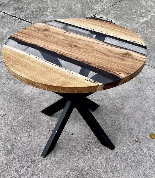 Luna - Tavolo da pranzo rotondo in legno e resina
