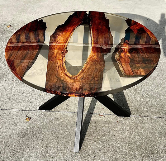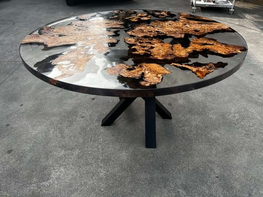 Riflesso - Tavolo da pranzo rotondo in legno e resina