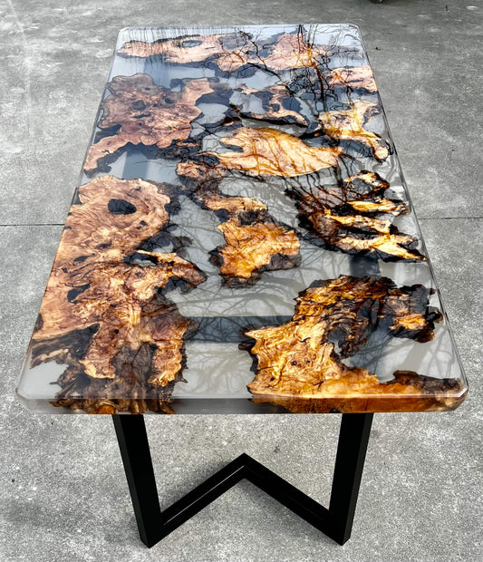 Si potrà dunque procedere alla realizzazione del tavolo con la colata della resina, i vari processi di levigatura e la finitura del top tavolo.