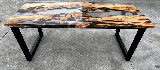 Certo, non siamo i primi a proporre tavoli e complementi d’arredo in legno e legno e resina.
