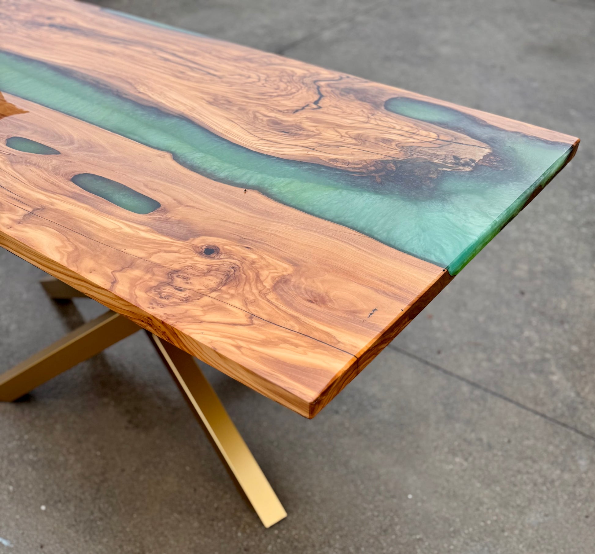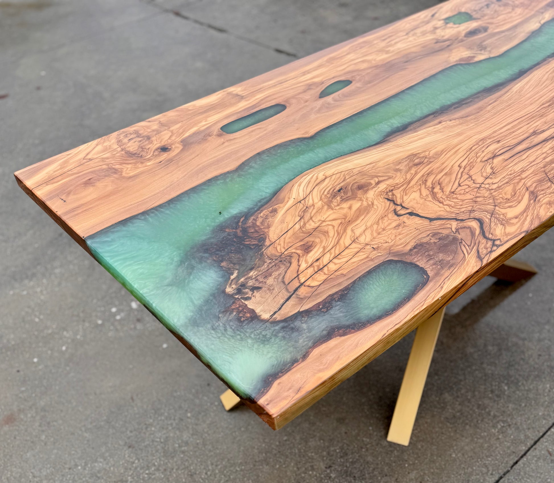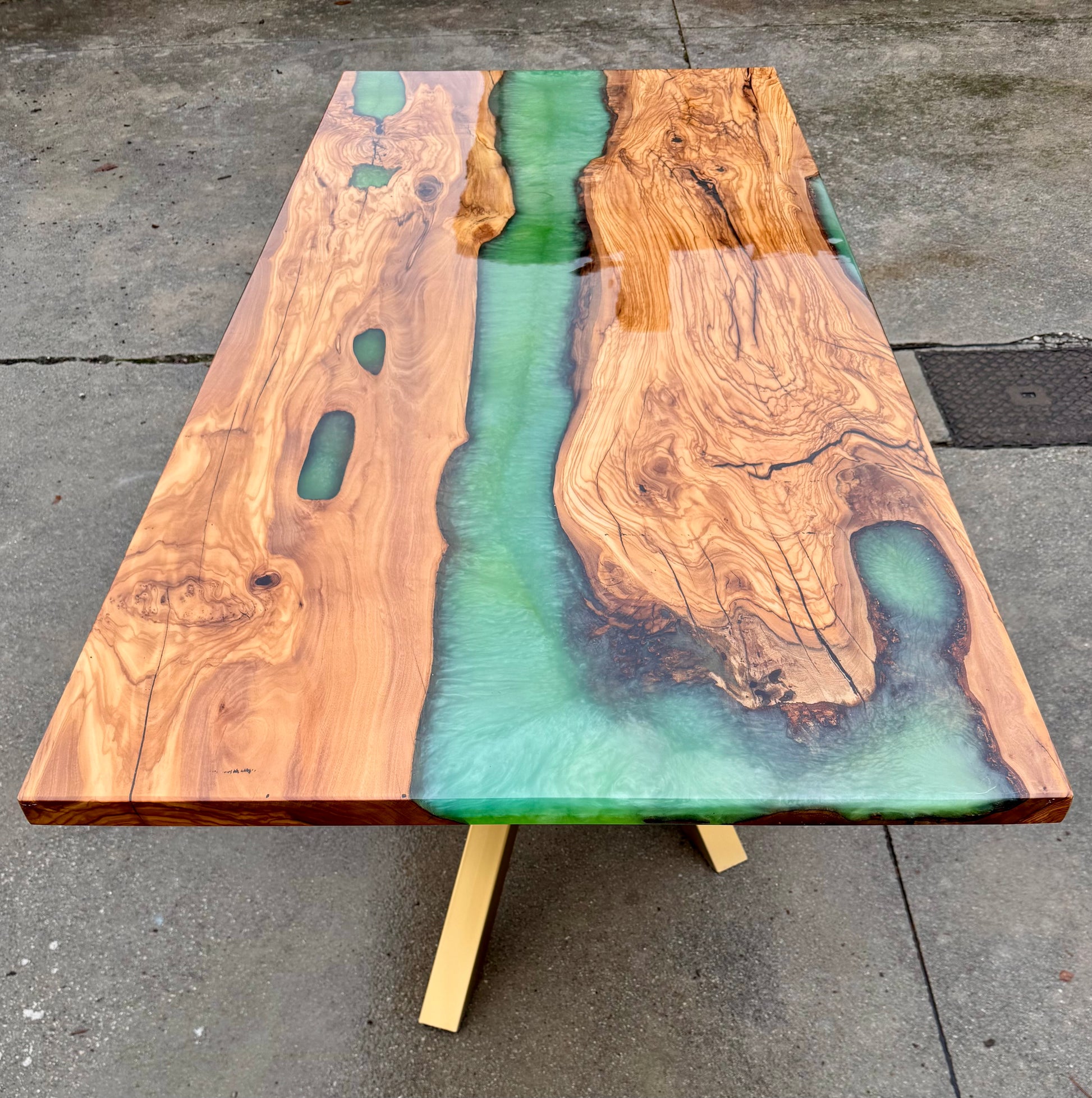 Il legno utilizzato per questo river table è l’Ulivo, è sempre l’ulivo.