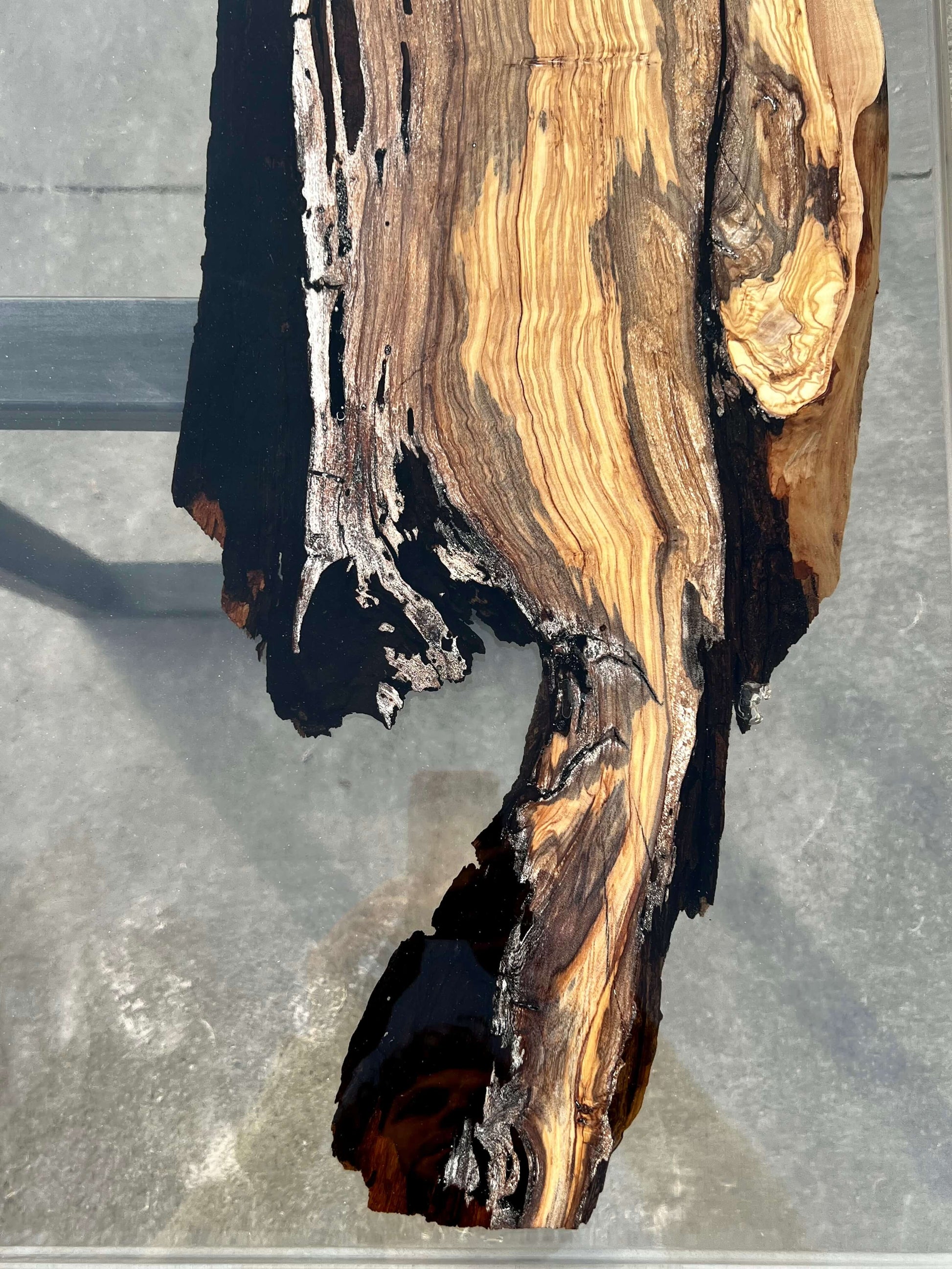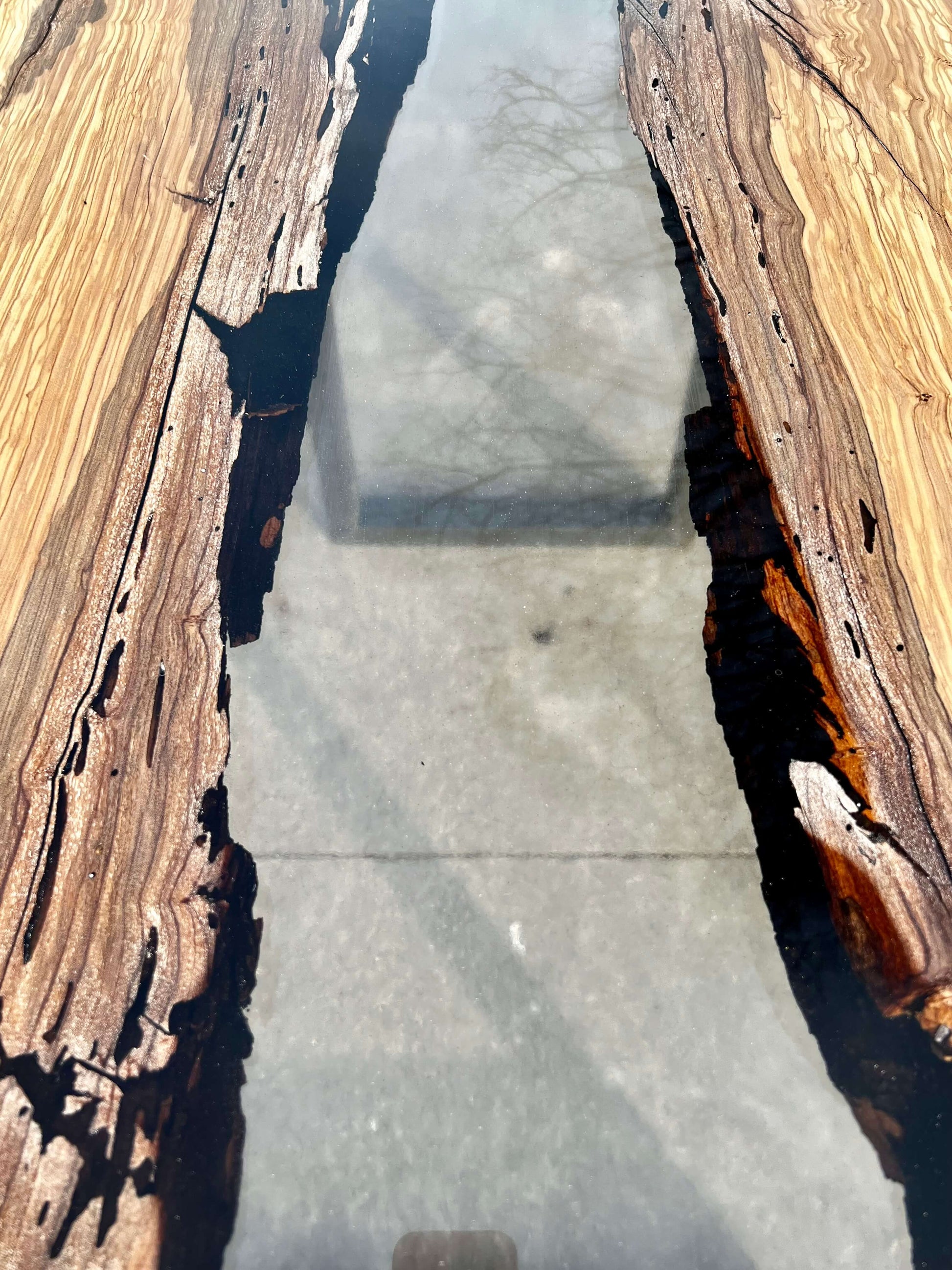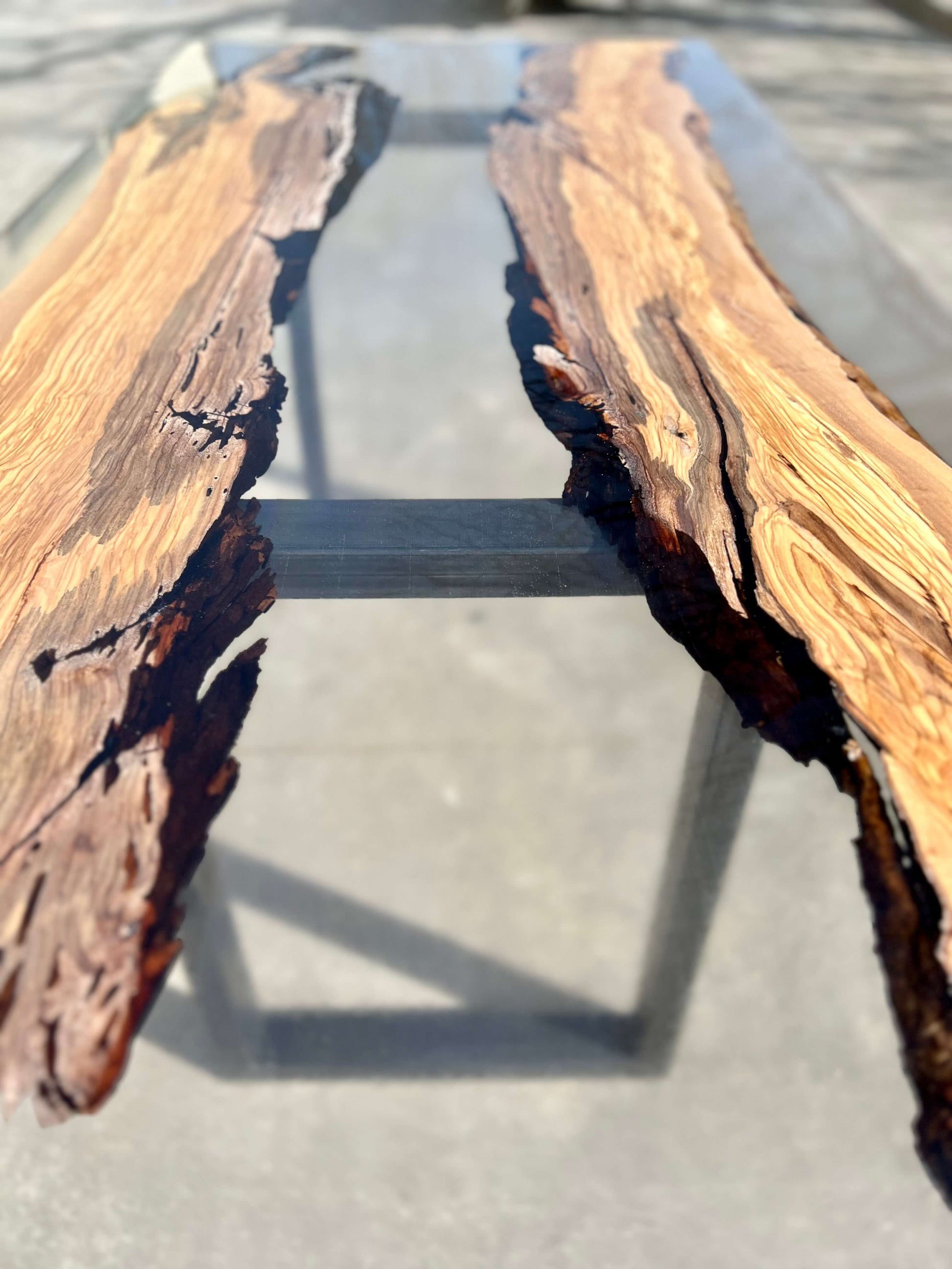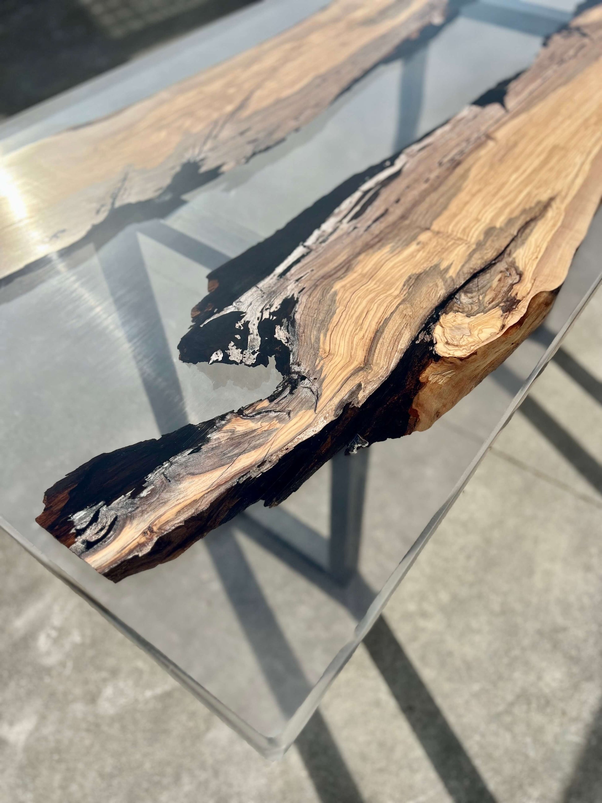 Tavolo in legno di ulivo e resina epossidica.